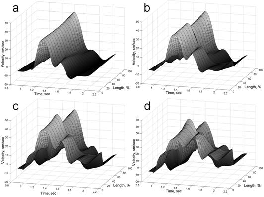 Таким образом, для описания работы сердца предлагается принять систему уравнений, состоящую из: осредненных по объему уравнений для кровотока в камерах сердца: