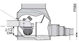 Минимальная высота между низом шарового обратного клапана и лотком трубы 12 см.