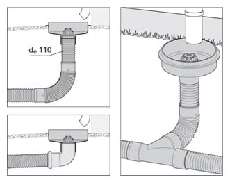 Прямые трубы укладываются с тщательно выверенным уклоном. Повороты и ответвления трубопровода могут осуществляться при помощи тройников, отводов или гибких патрубков. В муфтовых соединениях уплотнительные кольца не используются. Трубы укладываются и засыпаются щебнем так, чтобы водопропускающий слой щебня окружал трубопровод со всех сторон.
