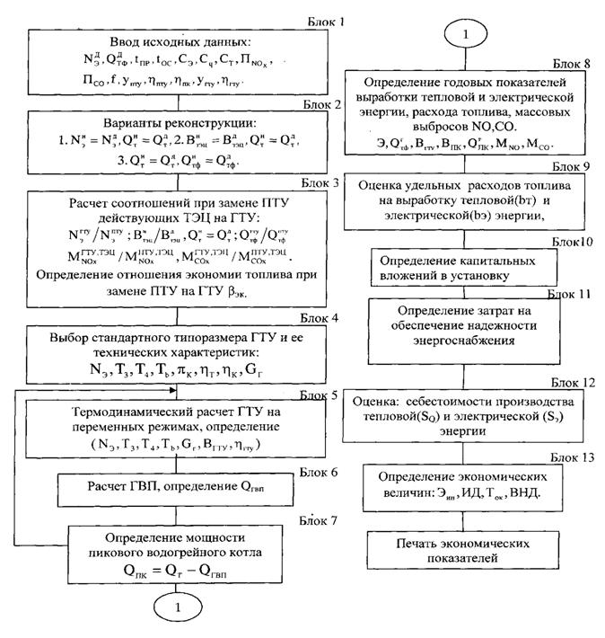 2. Разработан алгоритм расчета характеристик и показателей эффективности реконструкции городских ТЭЦ.
