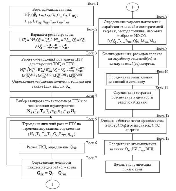 1. Разработка алгоритма расчета характеристик и показателей эффективности вариантов замены изношенного паротурбинного оборудования (ПТУ) ТЭЦ на газотурбинные (ГТУ) и парогазовые установки (ПГУ).