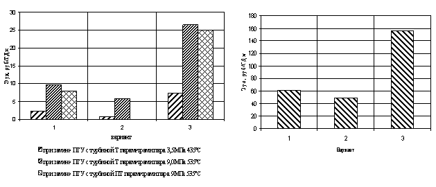 Экономические показатели вариантов замены ПТУ с турбиной Т, параметрами пара 9,0 МПа, 5350С на ПГУ