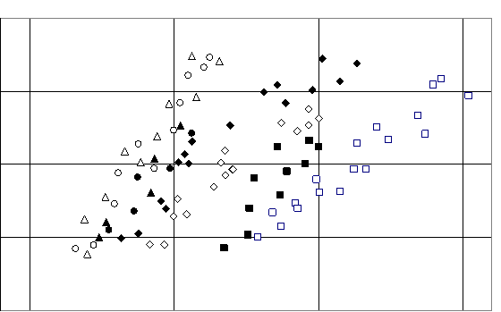 – сталь 17Г1С в среде, предварительное нагружение при R = 0,8; □ – сталь Х70 на воздухе, предварительное нагружение при R = 0,6; ■ – сталь Х70 в среде, предварительное нагружение при R = 0,6; ◊ – сталь Х70 на воздухе, предварительное нагружение при R = 0,8; ♦ – сталь Х70 в среде, предварительное нагружение при R = 0,8