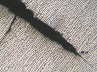 В первой группе были образцы с вставками, имеющими сетку эксплуатационных поверхностных трещин по типу КРН.