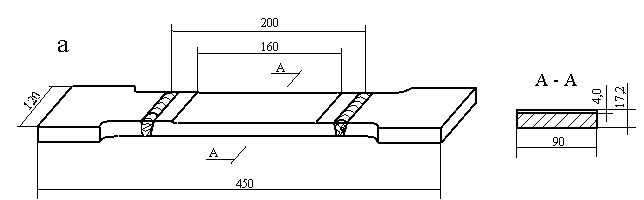 Для реализации первых двух вышеизложенных требований в качестве образцов были выбраны сегменты труб, которые вырезались вдоль образующей. Длина сегмента 450мм, ширина зависит от толщины стенки трубы и должна позволить изготовить рабочую часть образца-свидетеля таким образом, чтобы ширина образца была не менее 6 толщин стенки трубы из которой вырезался образец.