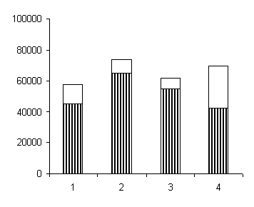 где; Кр – приведенная частотность гистограммы распределения замеров микротвердости материала в текущий момент эксплуатации; К0р – приведенная частотность гистограммы распределения замеров микротвердости материала в исходном состоянии. Приведенная частотность подсчитывается по гистограмме как сумма отдельных частотностей с учетом весовых коэффициентов, позволяющих равномерно учесть вклад (значимость) каждого интервала: