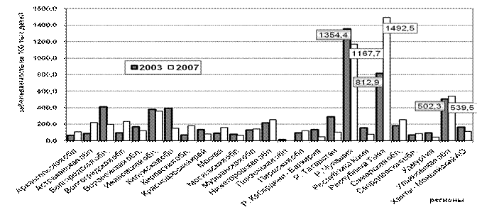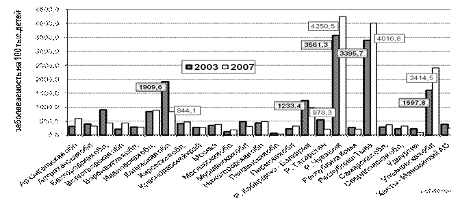 Параллельно с проводимыми исследованиями осуществлялся динамический мониторинг таких основных эпидемиологических показателей, как заболеваемость, распространенность ЙДЗ у детей и взрослого населения РФ за период 2003 – 2007 гг., позволяющих оценить эффективность программы ликвидации йодной недостаточности. Для изучения динамики показателей мы использовали данные статистической формы № 63 МЗ и СР РФ «Сведения о заболеваниях, связанных с микронутриентной недостаточностью», утвержденной Госкомстатом России в 2000 г.