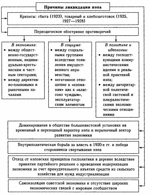 Непосредственным поводом для свертывания нэпа послужил очередной кризис хлебозаготовок зимой гг. В ноябре поставки сельскохозяйственных продуктов государственным учреждениям резко сократились, а в декабре положение стало просто катастрофическим. Страна оказалась в очень тяжелом положении. Еще в октябре 1927 г. говорил о "великолепных отношениях" с крестьянством. А в январе пришлось взглянуть правде в глаза: несмотря на хороший урожай, крестьяне поставили только 300 млн. пудов зерна (это было на 130 млн. меньше, чем в предыдущем году). Экспорт хлеба был поставлен под угрозу. Страна оставалась без валюты, необходимой для индустриализации. Вопрос о продовольственном снабжении городов оставался открытым. Серьезно осложнилась ситуация из-за снижения закупочных цен, дороговизны и дефицита промышленных товаров, неразберихи на пунктах сдачи зерна, слухов о начале войны, распространяемых в деревне. , видя происходящее, выдвинул теорию об обострении классовой борьбы в стране по мере продвижения к строительству социализма и призвал "отбросить" нэп.