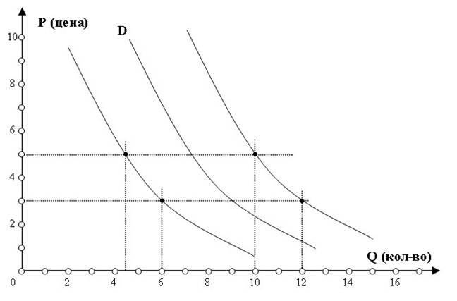 Смещение графика спроса при увеличении спроса на товары и услуги на рынке означает, что: