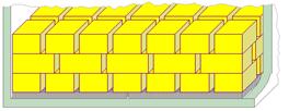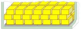 Однако этот норматив устарел. Он был разработан применительно к использованию рефрижераторных вагонов старого поколения малой грузоподъёмности, к способам укладки плодоовощей в вагонах (вертикальный, шахматный и перекрёстный), которые по известным причинам не используются в практике перевозок (рис. 1).