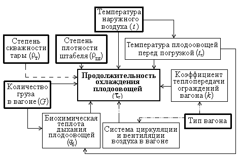 Для решения задач, поставленных в диссертационной работе, в наибольшей степени отвечает методика, предложенная в ПГУПС. Она разработана на базе статистического обобщения материалов контрольно-опытных перевозок плодоовощных грузов и метода экспертных оценок. Однако эта методика не учитывает влияние степени скважности тары на продолжительность охлаждения плодоовощей.
