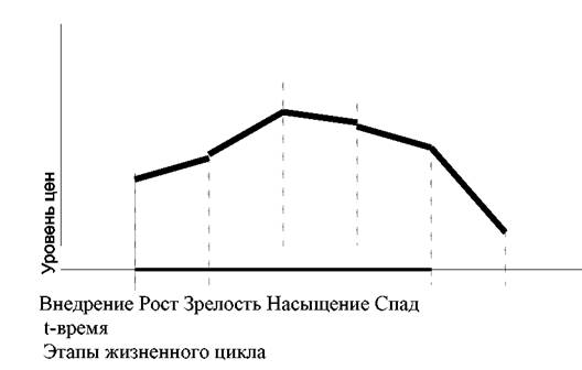 На рис.1 схематически изображена зависимость цены от этапа жизненного цикла объекта: