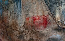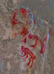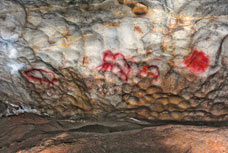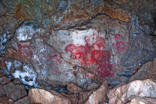 Еще одна большая группа красных, но уже схематических изображений расположена в дальней части первого этажа пещеры. Все древние рисунки находятся в глубине Шульган-Таш, на расстоянии около 300 метров от входа в трех залах: Купольном, Знаков и Хаоса.