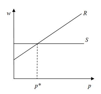 На рис. 8.5 линия R представляет зависимость сдельной оплаты от производительности, а линия S – величину фиксированного оклада. Если основным параметром отбора агентов для принципала является уровень производительности p*, то, как показано на графике, соответствующий отсев будет обеспечен посредством установления сдельной оплаты труда. Это связано с тем, что агенты с более низкой производительностью сами не согласятся работать на условиях сдельной оплаты, поскольку при фиксированном окладе они получат больше. Сдельная оплата может повысить благосостояние только тех, чья производительность превышает уровень р*.