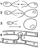 Конъюгация. Особой формой полового процесса является конъюгация, характерная для некоторых нитчатых водорослей. Отдельные гаплоидные клетки нитевидных талломов, расположенных близко друг от друга, начинают образовывать выросты. Они растут навстречу друг другу, соединяются, перегородки в месте стыка растворяются, и содержимое одной клетки (мужской) переходит в другую (женскую). В результате конъюгации образуется диплоидная зигота.