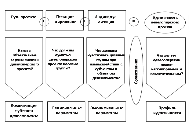 На рис. 5 изображены этапы формирования идентичности объекта девелопмента.