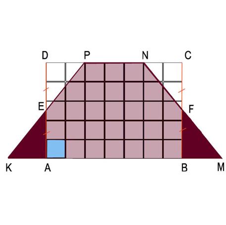 №5 ABCD - прямоугольник; точки E и F – середины его сторон AD и BC соответственно. Заштрихованный квадрат представляет собой единицу измерения площадей. Найдите площадь трапеции KMNP.