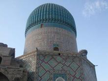 №3 В Самарканде расположен имеющий мировую известность памятник архитектуры – мавзолей Гур-Эмир. Восьмигранное здание мавзолея несет на себе цилиндрический барабан, высота которого равна его диаметру. Каждая стена Восьмигранника – квадрат со стороной 10 м. Барабан увенчан куполом ярко синего цвета, диаметр основания которого 15 м, а высота 12,5 м. Стены восьмигранника и поверхность барабана покрыты голубыми, светло-голубыми и белыми керамическими плитками.