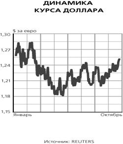 Доллар продолжает сдавать позиции единой европейской валюте. И уже в 2002 г., по оценке экспертов, их стоимость сравняется. Для России девальвация американской валюты к евро означает сокращение торгового баланса, так как наш экспорт деноминирован в основном в долларах, а импорт — в евро. Кроме того, рост курса единой европейской валюты утяжеляет российский внешний долг , 60% которого предстоит возвращать в евро.