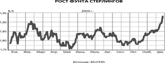 Оптимисты оказались правы. Серия положительных новостей вызвала скачок курса фунта на этой неделе до уровня $1,9313. Во вторник председатель Банка Англии Мервин Кинг оптимистично оценил перспективы экономики, которая единственная среди ведущих стран мира за последние годы не пережила ни одного квартала спада. К тому же британские экспортеры не так страдают от укрепления фунта к доллару, как европейские от роста евро. Основной торговый оборот Великобритании приходится на еврозону, а к евро фунт дешевеет.