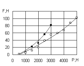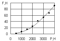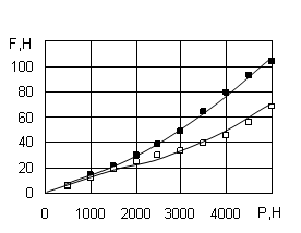 Рис. 3.14. Зависимость силы трения между толкателем диаметром 2,05 мм и глубоким отверстием диаметром 2,14 мм (заготовка из стали 40Х, НВ = 2200МПа, глубина отверстия 200 мм, Ra » 0,5 мкм) от величины сжимающей силы |