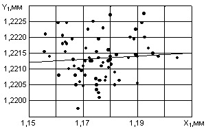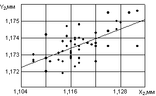 Рис. 5.4. Зависимости между средними диаметрами отверстий в заготовках из стали 45 после сверления (Х2) и двухциклового дорнования (Y2) |