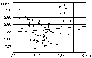 Рис. 5.3. Зависимости между средними диаметрами отверстий в заготовках из стали 10880: а – после сверления (Х1) и одноциклового дорнования (Y1); б – после сверления (Х1) и двухциклового дорнования (Z1) |