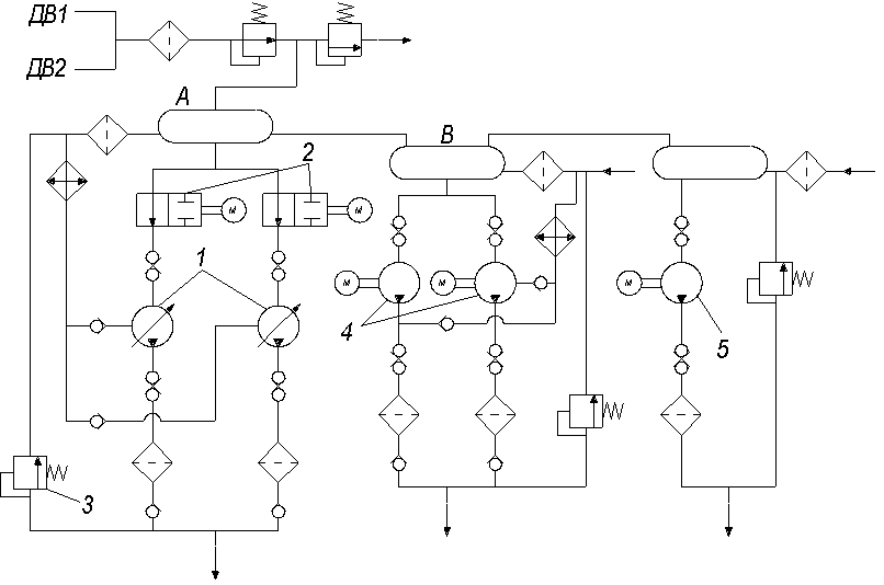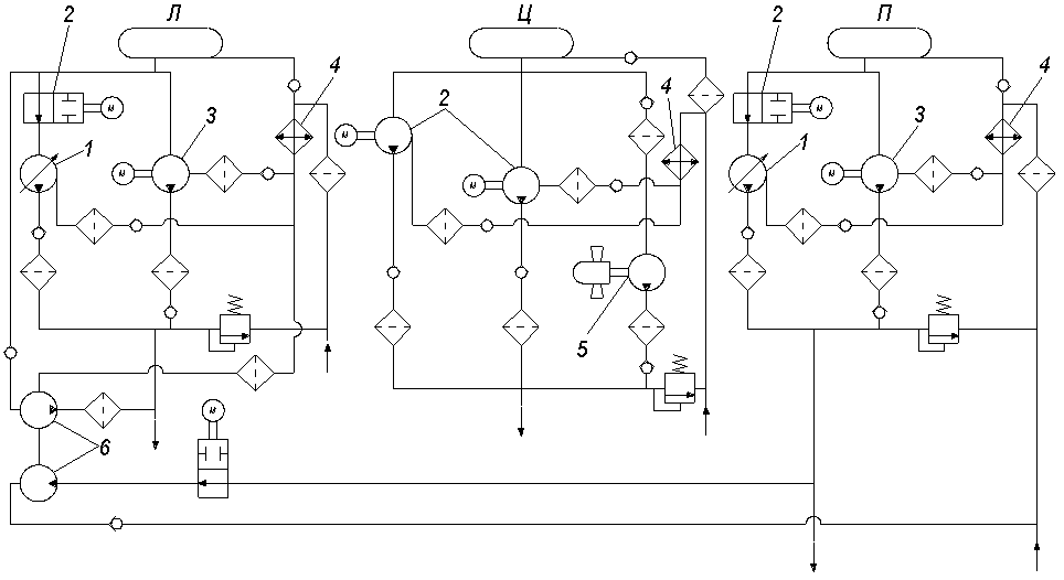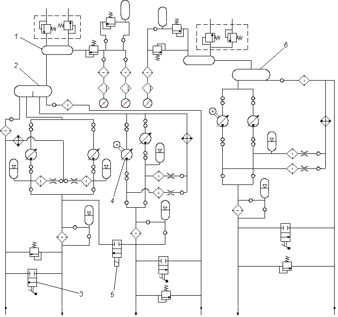 Обобщённо говоря, гидравлическая система состоит из блоков питания и функциональных подсистем. Блок питания содержит насосы и необходимые гидравлические агрегаты, что будет рассмотрено далее.
