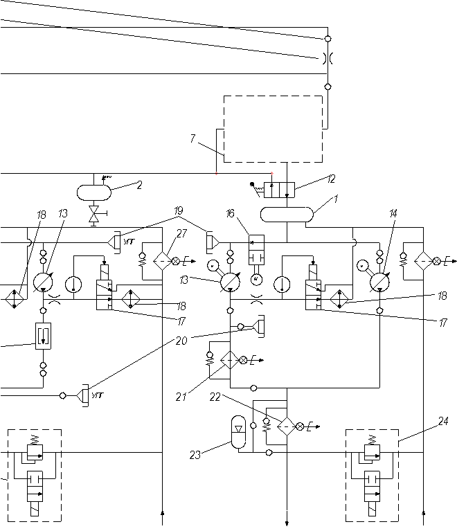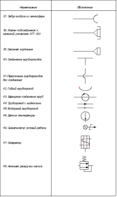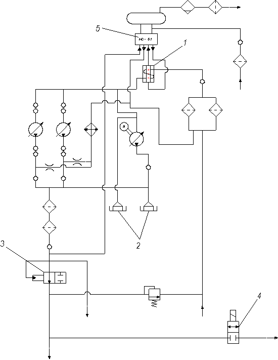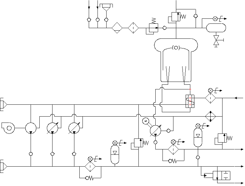 В линии всасывания фильтры не устанавливаются. До и после насосов должны быть клапаны разъёма. Во всех параллельных ветвях устанавливаются обратные клапаны. За насосами должны стоять аккумуляторы (могут быть и гасители пульсации), фильтры и предохранительный клапан. В линии слива также устанавливаются фильтры. Должны быть бортовые клапаны разъёма для подсоединения наземной установки.