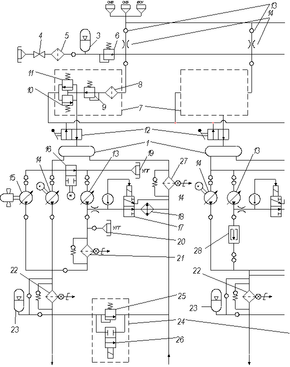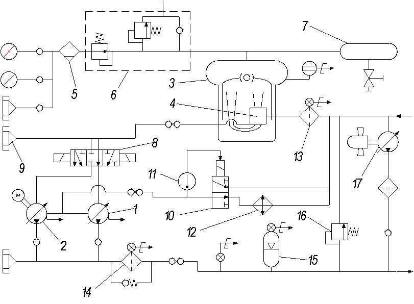 Гидравлическая система состоит из источников энергии, коммуникаций-трубопроводов с гидравлическими агрегатами (элементами систем, рассмотренными во