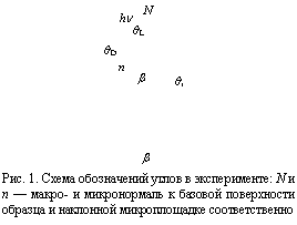 В настоящей работе использованы два подхода к исследованию влияния шероховатости облучаемой мишени в расчетах коэффициента распыления. В первом подходе, как и в работе [6], измеряли распределения локальных углов падения ионов на микроплощадки шероховатой поверхности и использовали данные моделирования для гладкой поверхности, полученные с помощью программы TRIM. SP. Для определения локальных углов падения использовали гониофотометрию отраженного лазерного излучения. Во втором подходе учет шероховатости производился непосредственным моделированием распыления с помощью программы SCATTER-R [9], в которой статистическое моделирование парных атомных взаимодействий включало в себя цифровые данные о рельефе реальной поверхности, получаемые с помощью сканирующего туннельного микроскопа.
