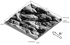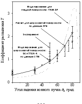 Учет в работе [6] шероховатости поверхности привел к хорошему согласию данных моделирования с экспериментом по распылению графитов ионами D+ с энергией 2 кэВ. Данные о топографии поверхности в [6] получали с помощью туннельного микроскопа. Плоское пиксельное изображение облученной поверхности преобразовывали в объемное изображение поверхности с тем, чтобы определить распределение нормалей микроплощадок на поверхности образца и соответствующее распределение локальных углов падения ионов. Коэффициенты распыления микроплощадок определяли посредством компьютерного моделирования гладкой поверхности на атомном уровне.
