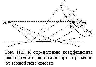 Изменение напряженности поля волны при отражении от сферической поверхности можно рассчитать, используя следующие замены в интерференционных формулах для плоской Земли: