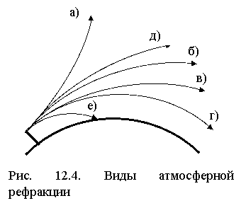 Локальные изменения давления, а также температурные инверсии приводят к колебаниям коэффициента преломления вблизи земной поверхности n = 1,00026 ¸ 1,00046. Выше 10 км полагают n = Const = 1,00011.