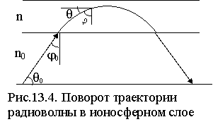 13.5. Распространение радиоволн в простом ионосферном слое