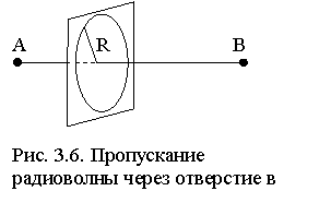 Экспериментально существование зон Френеля подтверждается, например, изменчивостью в точке приёма B напряжённости поля, создаваемого источником в т. A, при изменении радиуса R отверстия в условно бесконечном экране (рис. 3.6). В полном соответствии с принципом Гюйгенса сложение сигналов от неперекрытых еще зон Френеля приводит к колебаниям сигнала. Другой пример приведён в разделе 7.