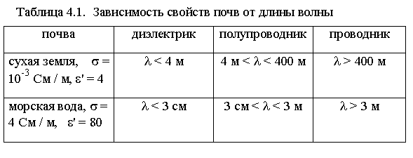 В зависимости от длины волны земная поверхность может иметь свойства диэлектрика (если e' >> 60sl, т. е.
