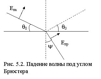 , называемого углом Брюстера, при котором числи, а следовательно, и RВ, равен 0. При падении волны под таким углом отражение отсутствует, и вся энергия падающей волны переходит в энергию преломленной волны (рис. 5.2).