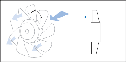 Радиальные вентиляторы используются там, где необходимо очень высокое общее давление. Особые характеристики радиальных вентиляторов определяются формой рабочего колеса и лопаток.