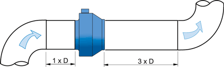 Аэродинамические потери сетиХарактеристики вентиляторов на графиках в каталоге приведены с тем условием, что соблюдаются определенные правила установки вентиляторов. Со стороны всасывания (забор) должен быть прямой участок воздуховода, равный 1-му диаметру воздуховода и аналогичный участок в 3-и диаметра воздуховода со стороны нагнетания (выхлоп). Правильно установленный канальный вентилятор любого типа: