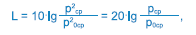 Уровень звукового давления, выраженный в логарифмической шкале, находится по формуле