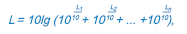 где L1, L2, …, Ln – уровни звукового давления, создаваемые соответствующими источниками в расчетной точке; n – количество источников шума (вентиляционных решеток) в помещении.
