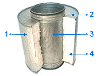 ГЛУШИТЕЛИ ТРУБЧАТЫЕ КРУГЛЫЕ ГТК-01Конструкция состоит из двух цилиндров, один из которых расположен внутри другого, а пространство между ними заполнено изоляцией, понижающей шумы. Внутренний слой поглотителя шума перфорированный, на концах имеются специальные переходники для монтажа в круглый воздуховод. Корпус выполнен из оц. стали. с одним фальцевым швом, крепление боковых частей выполнено фальцем (без заклепок и саморезов). .