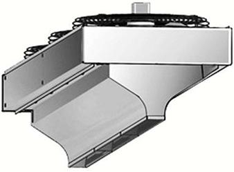 Осевые вентиляторы с внешнероторными двигателями установлены в ряд и совместной работой подают воздух в камеру с воздухораспределительной щелью.