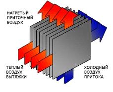 Воздушные потоки разделены пластинами через которые происходит теплообмен. Принцип теплообмена (рекуперации) происходит без физического смешивания встречных потоков воздуха. Тепло удаляемого из помещения воздуха передаётся приточному воздуху посредством целлюлозных пластин теплообменных кассет. Движение воздушных потоков в кассетах перекрёстное. В таких секциях приточных установок нет подвижных частей, что продлевает срок их эксплуатации и делает относительно дешевыми.