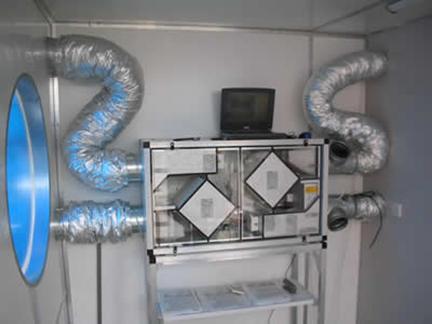 Такие рекуператоры, конструктивно представляя из себя одну из модификаций теплообменников ТТАИ для небольших помещений с расходом воздуха 30-130м3/ч (приток и вытяжка). Степень рекуперации декларируется 71%. Встроенные маломощные по давлению вентиляторы не позволяют подключать воздуховоды. Воздух на выходе из рекуператора низкой температуры и накладывает свою нагрузку на систему отопления, что в принципе инженерно не верно, т. к. эти нагрузки немаловажны, но не учтены в расчете теплопотерь систем отопления. В идеале установка калорифера для догрева до комнатной температуры. что возможно выполнить.