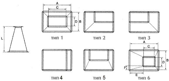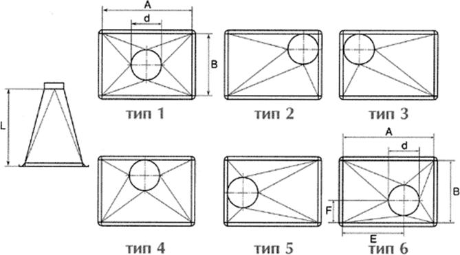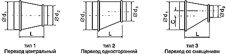 Предназначены для соединения круглых и прямоугольных воздуховодов различного сечения, при переменном сечении системы.