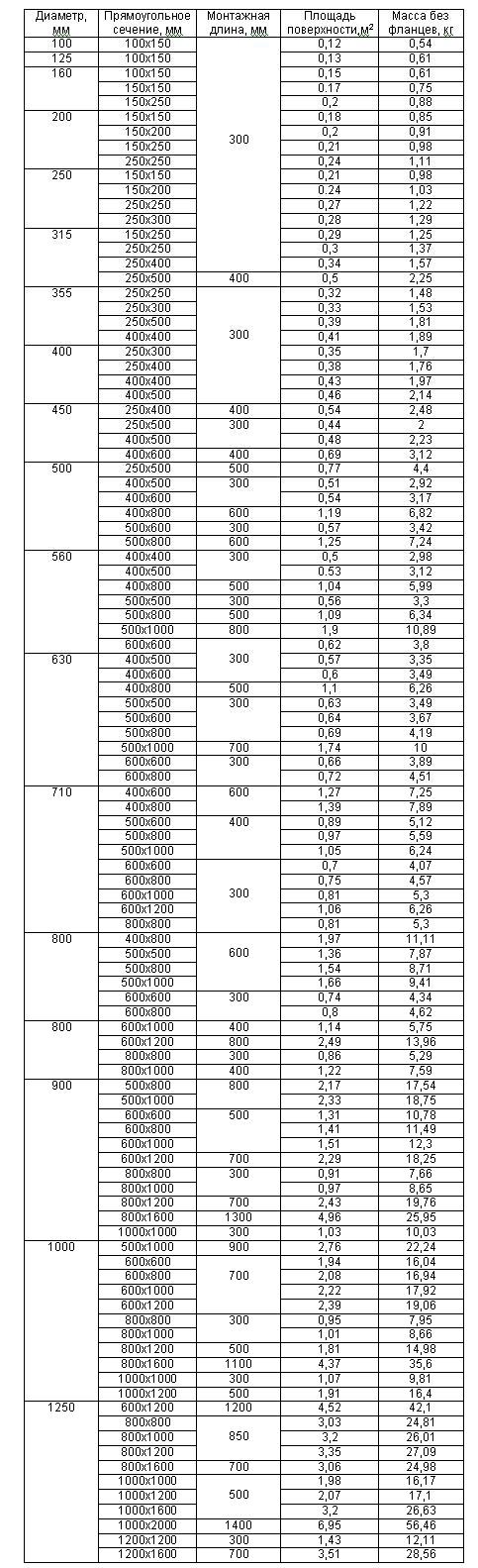 - круглого сечения: d100мм, 125, 150, 160, 200, 250, 300, 315, 400, 450, 500, 550, 600, 630, 700, 800, 900, 1000 и более;