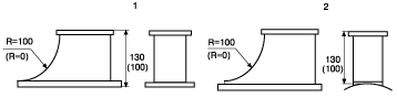 Размер боковой (поворотной) стороны А записывается первым. Размер затылочной (гнущейся) стороны В записывается вторым. По умолчанию значение R=100мм.