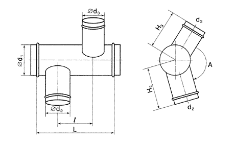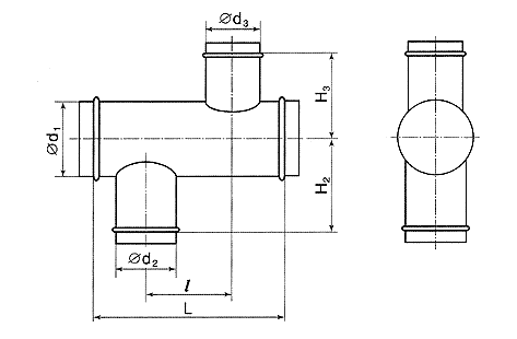Если l > (d2+d3)/2 + 120мм, то рассмотрите возможность использования двух тройников.